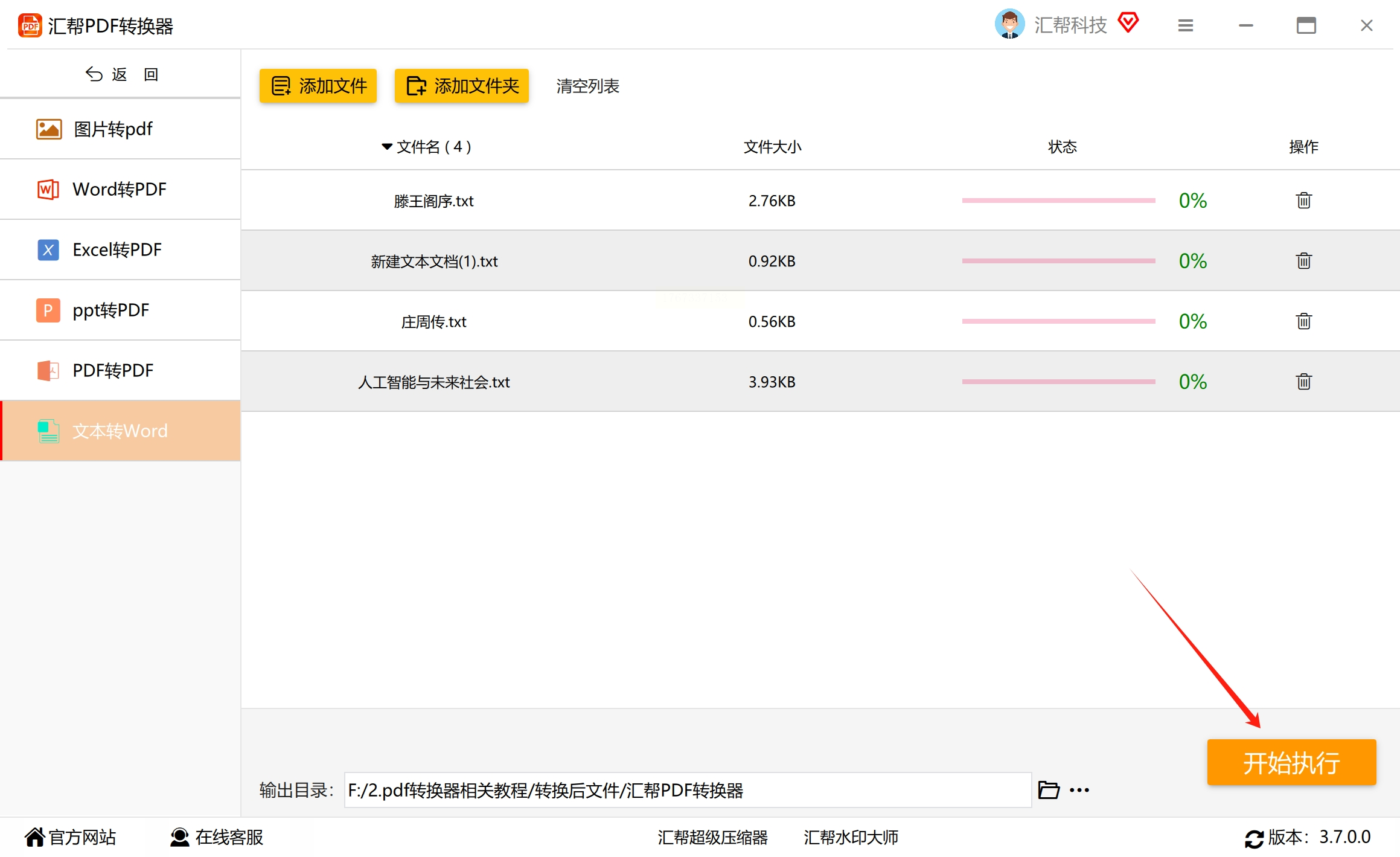 6. 开始转换:确认文件列表无误后,点击“开始执行”或类似按钮,软件将自动处理转换任务。