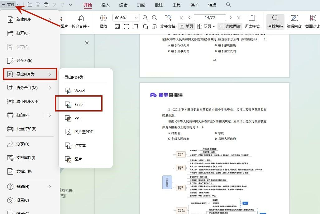 2. 选择导出功能:点击左上角的"文件"菜单,选择"导出PDF为",然后在弹出的子菜单中选择"Excel"。