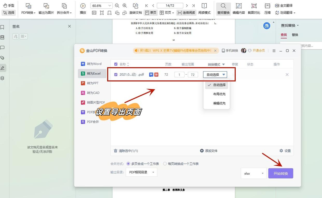 4. 开始转换:点击"开始转换"按钮,WPS会自动处理PDF到Excel的转换过程。
