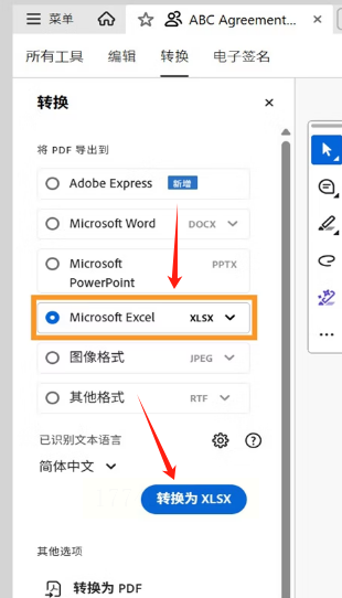 2. 选择Excel格式:在导出设置中,左侧选择"Microsoft Excel",右侧下拉菜单中选择输出格式为"XLSX"(Excel 2007及以后版本格式)。