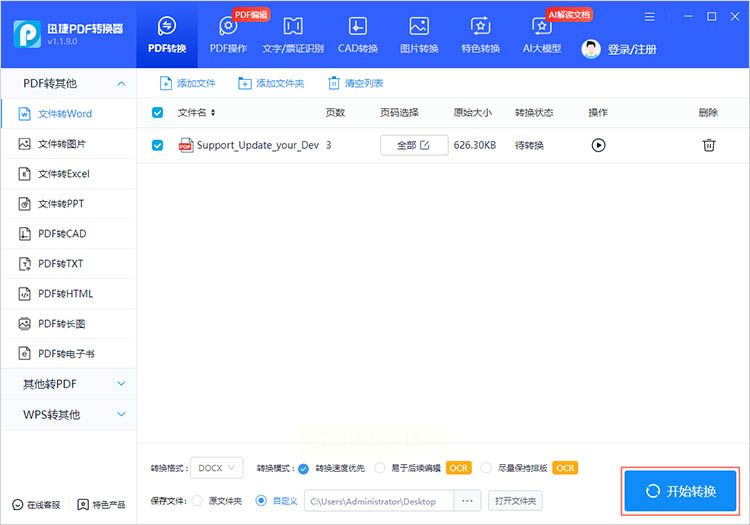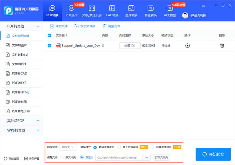 迅捷PDF转换器的优势是操作流程更轻量化,适合需要快速处理单个PDF文件的场景。