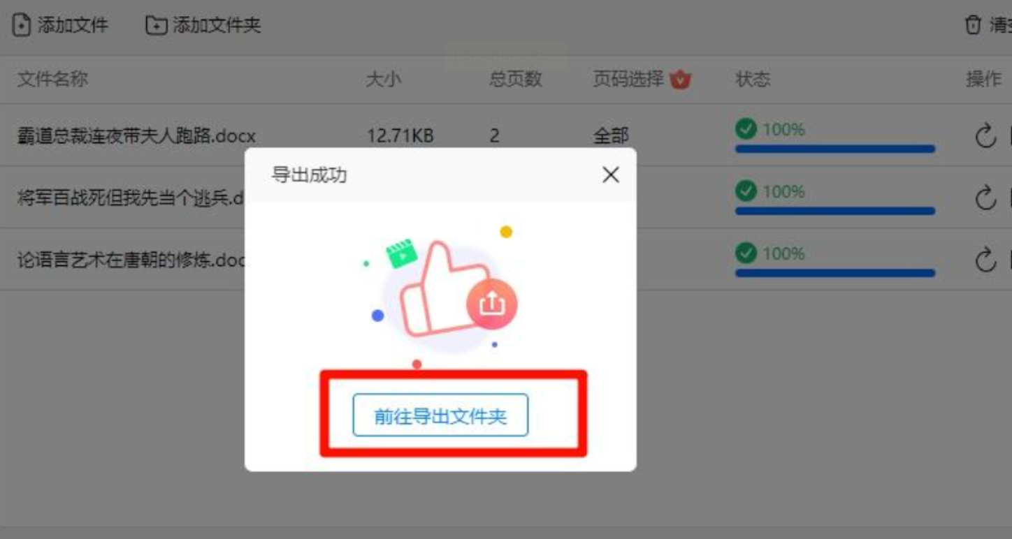点击“批量添加”按钮,通过文件夹批量导入多个Word文档(支持.docx、.doc格式),或使用“拖拽”功能快速批量选中文件。导入后可预览文件列表,检查是否有误导入。
