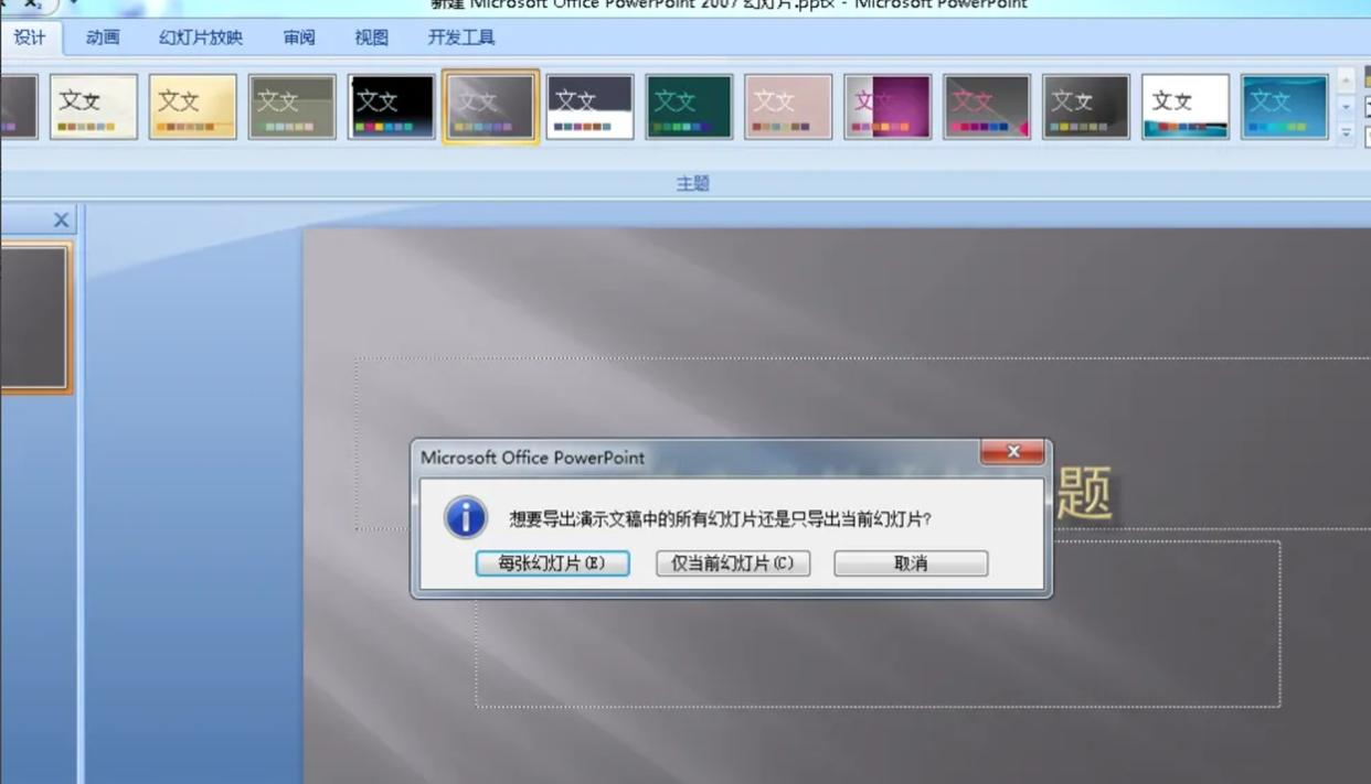 3. 选择导出范围: 系统会弹出一个提示框,问你要导出所有幻灯片还是当前幻灯片。如果你想导出整个 PPT,选择“每张幻灯片”;只需要导出当前页,就选择“当前幻灯片”。