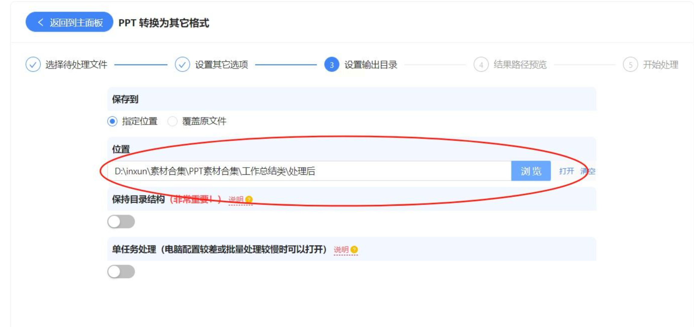 4. 设置输出目录: 设置转换后的输出目录。