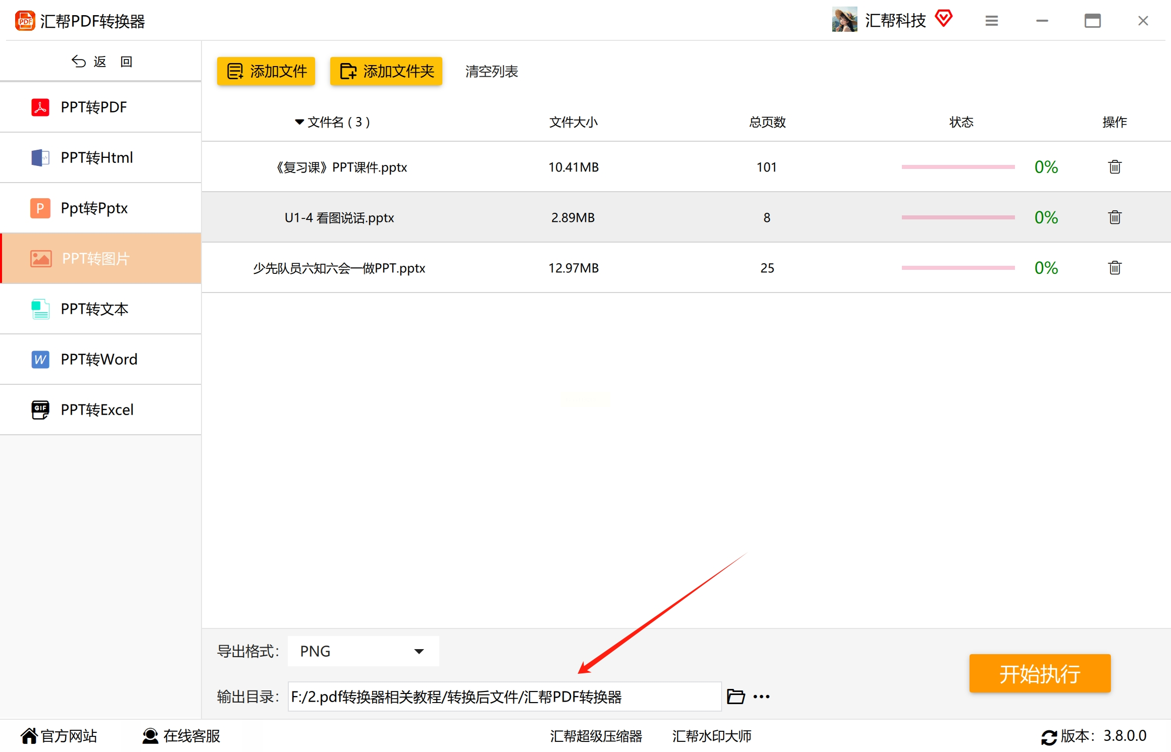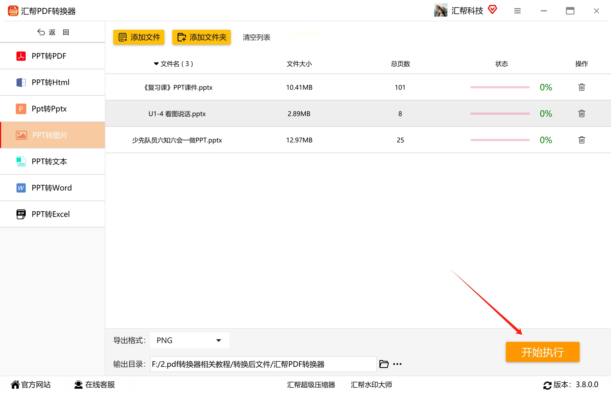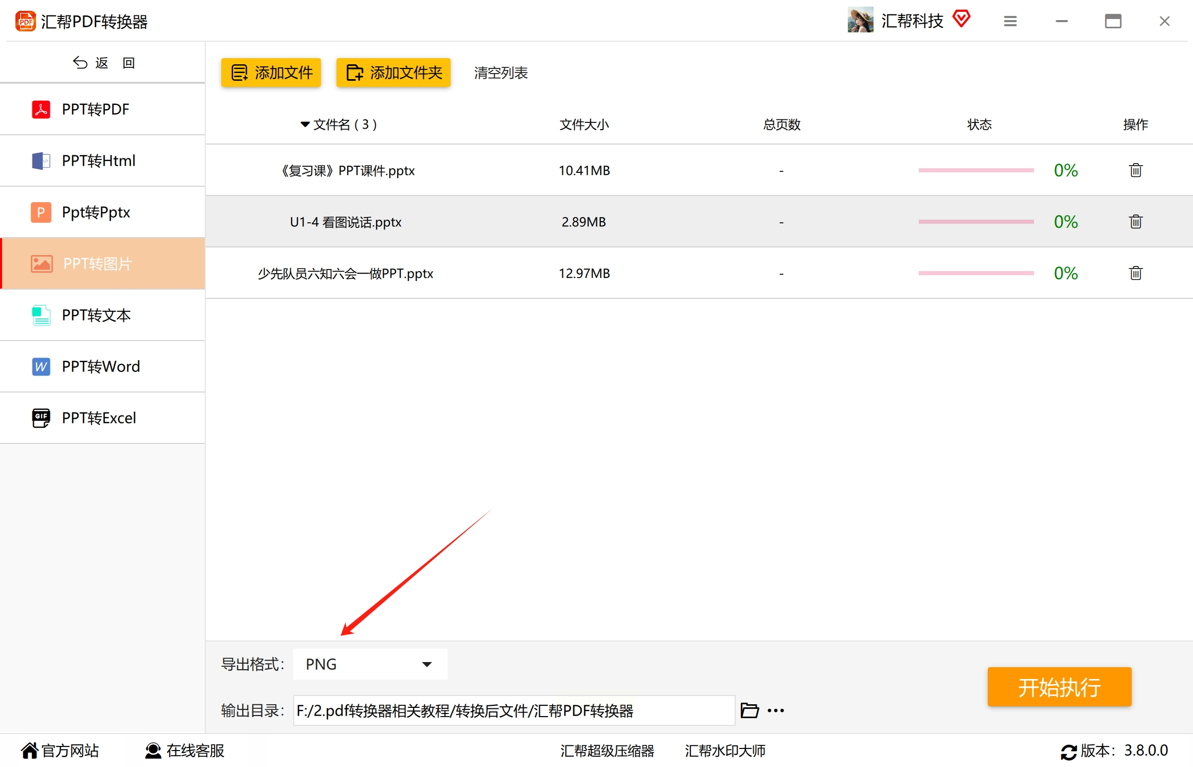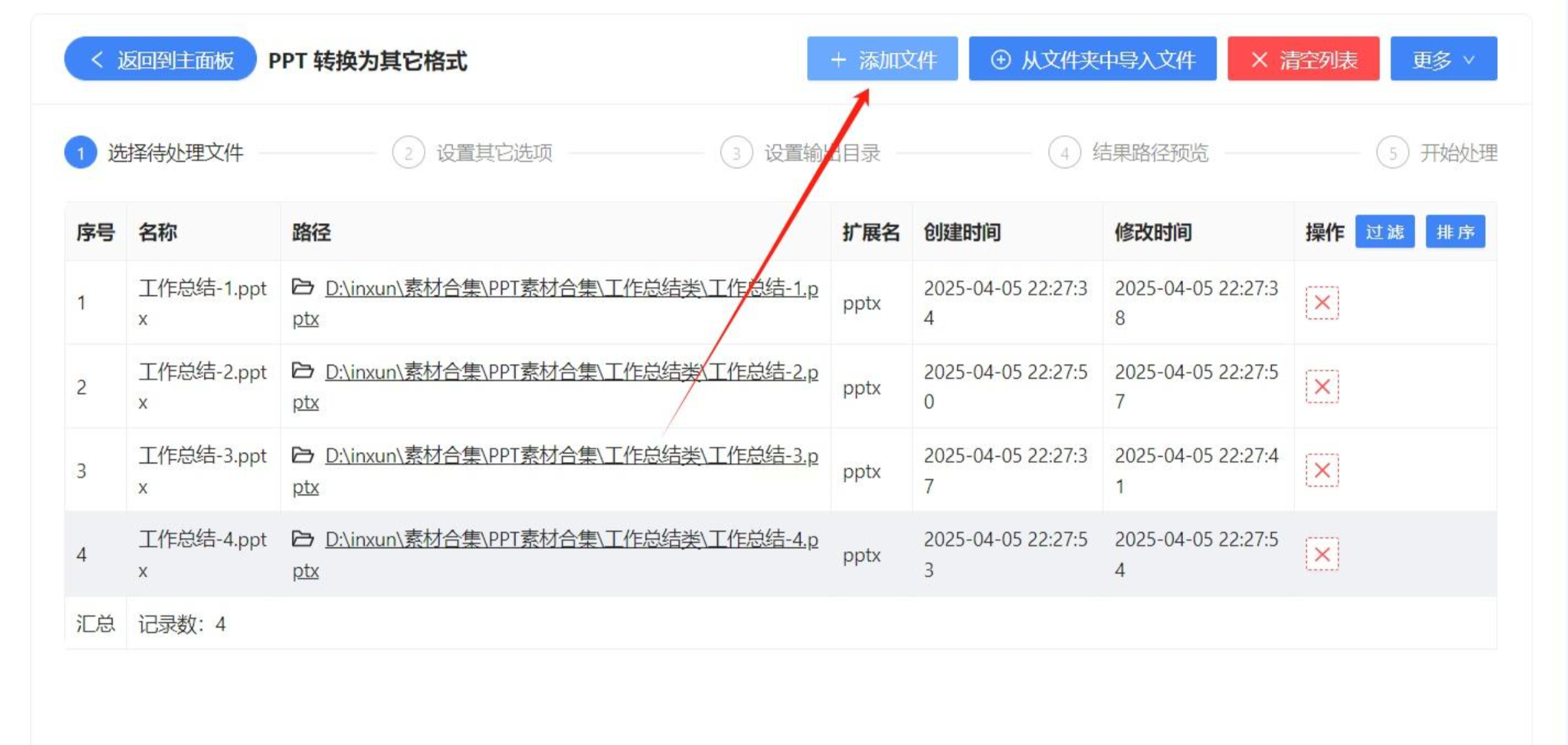 2. 添加文件: 添加需要批量转换的 PPT 文档。