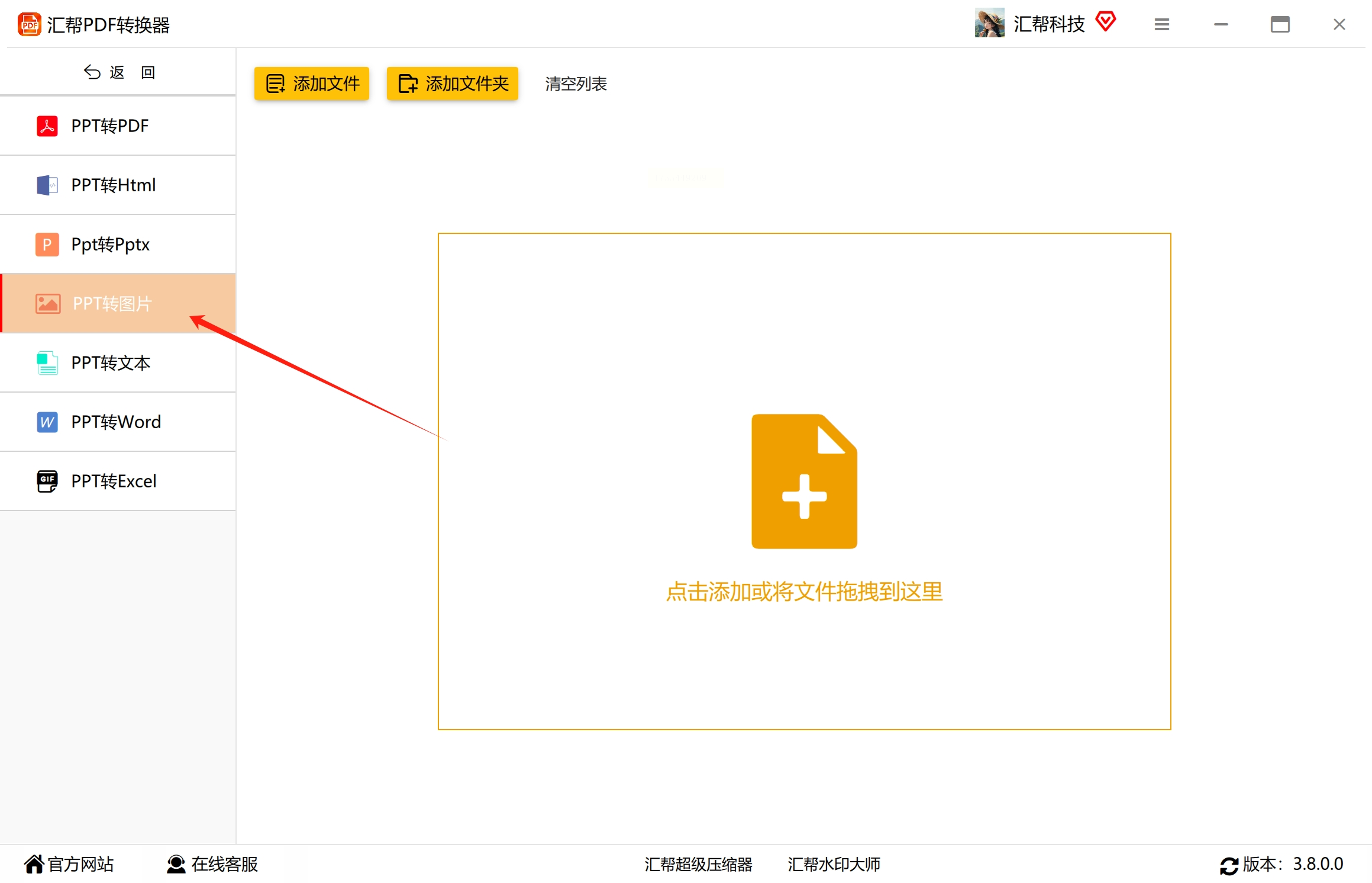1. 打开软件: 打开“汇帮PDF转换器”软件,找到 PPT 转图片的功能。