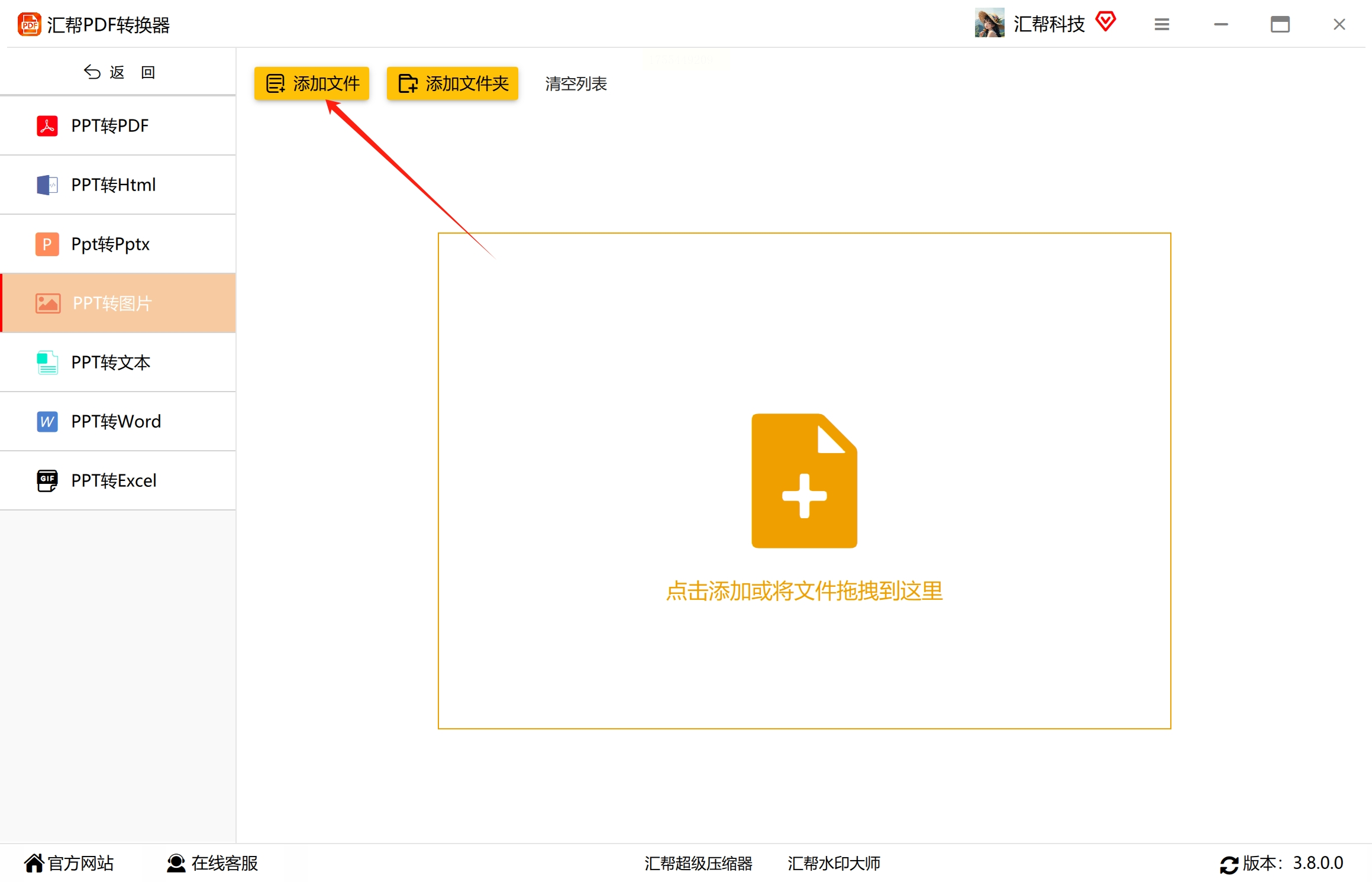 2. 添加文件: 点击“添加文件”按钮,选择你需要转换的 PPT 文件,支持一次性添加多个文件。