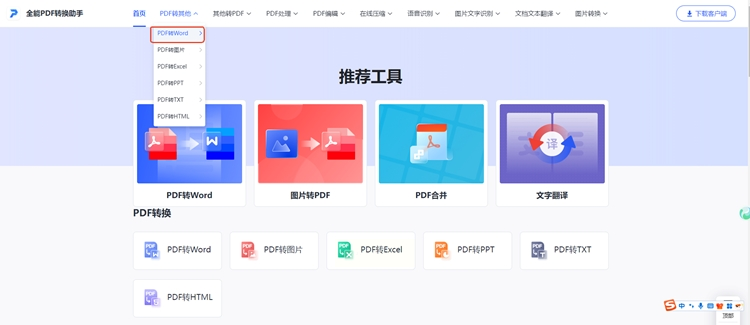 返回首页,选择“PDF转Word”工具,导入刚才的PDF文件,设置转换参数(如保留图片、表格格式),点击“开始转换”。