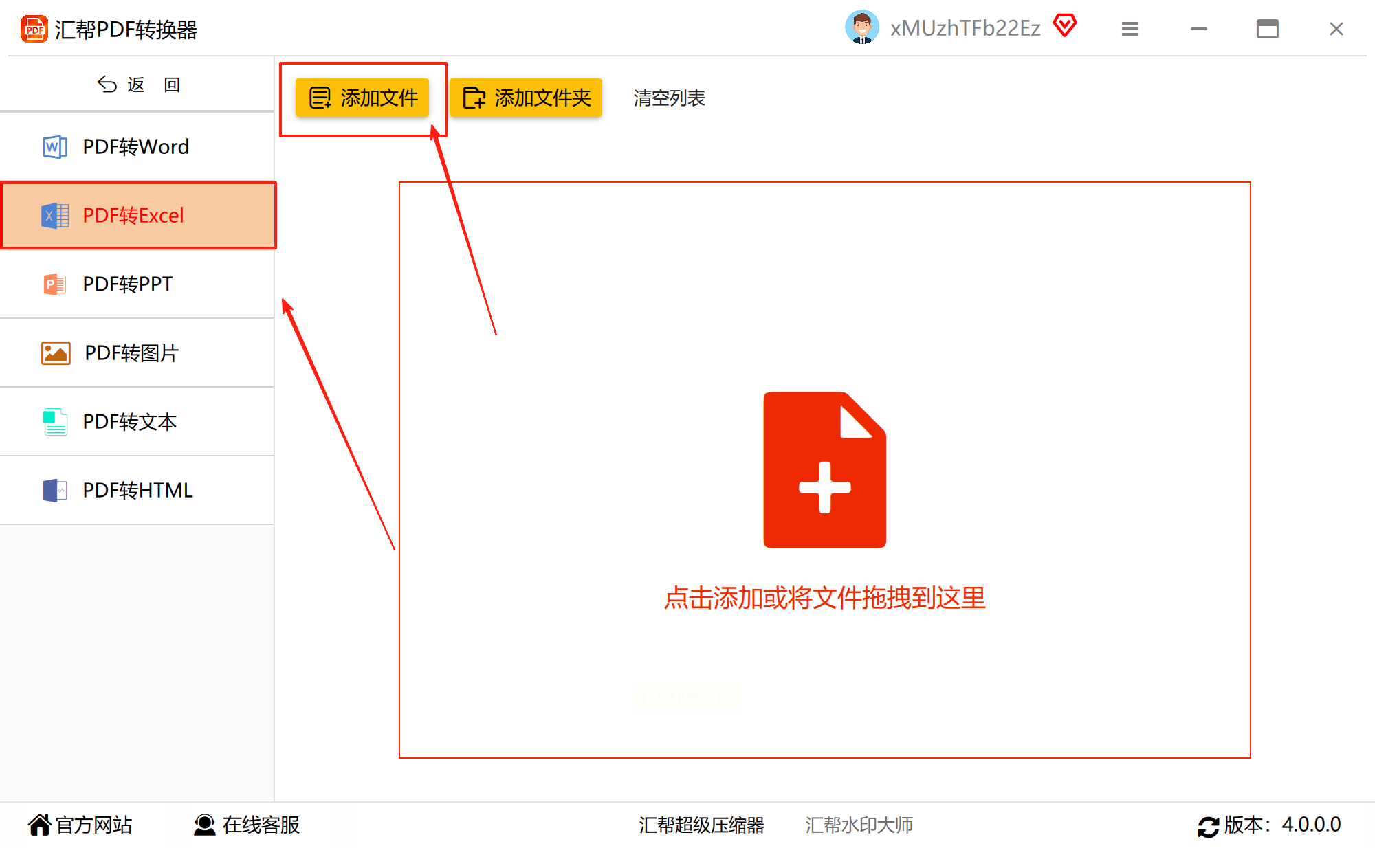 - 点击「添加文件」或直接拖拽PDF至主界面