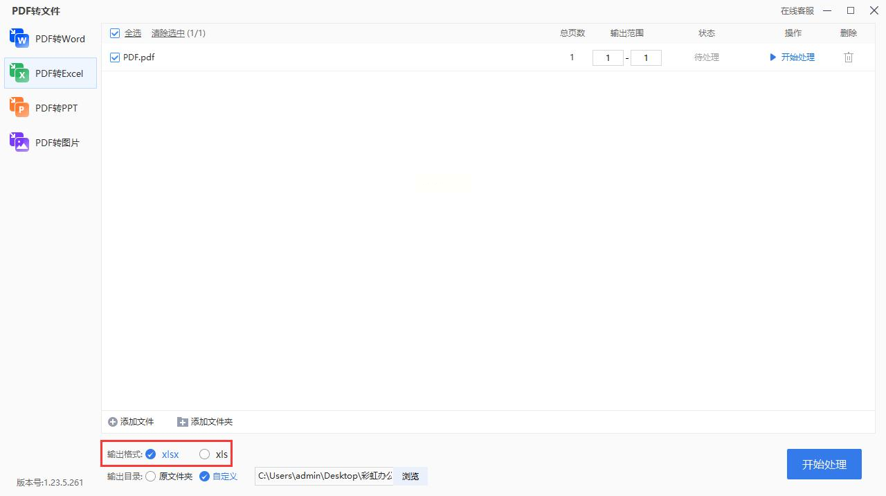 点击「批量转换」按钮,导入多个PDF文件,设置统一输出路径后一键转换。