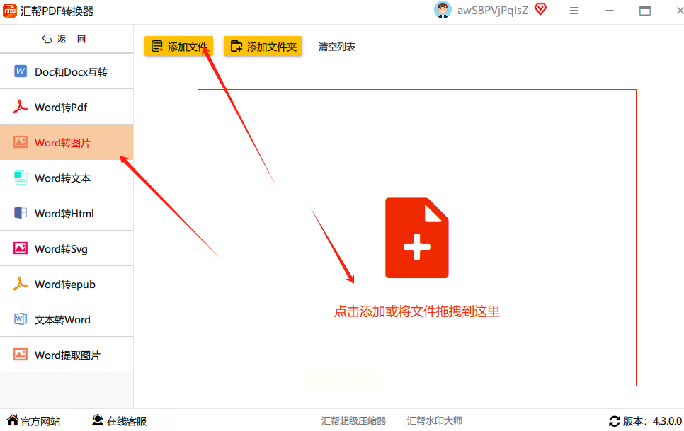 2. 导入文件:点击「添加文件」,支持批量拖拽多个Word文档,或直接拖入待转换文件。