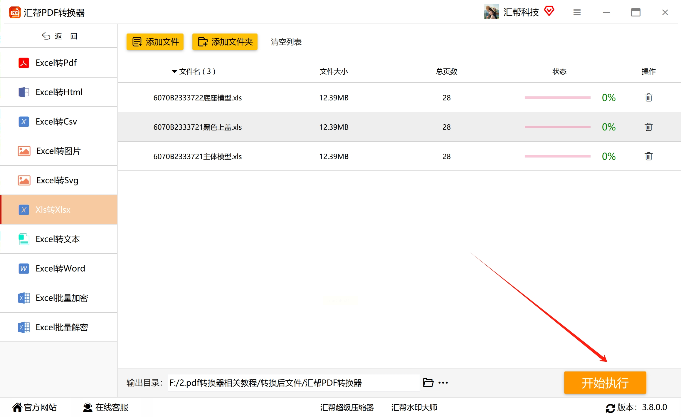 4. 设置输出路径:在底部区域点击"选择输出目录",建议设置为D盘或E盘等非系统盘的文件夹。这里有个小技巧:可以创建一个名为"Excel转换"的文件夹,方便后续管理转换后的文件。