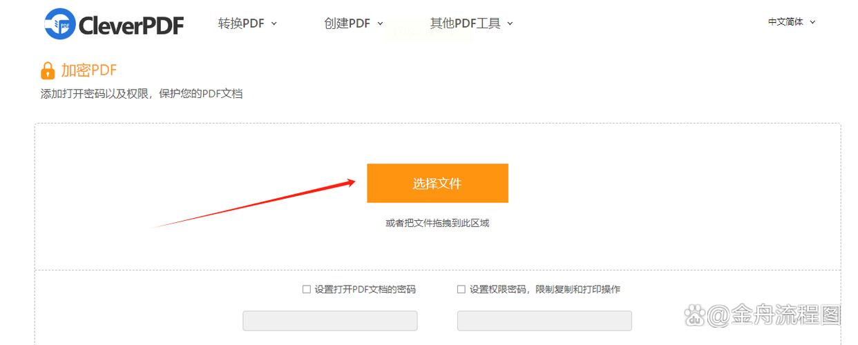 2. 点击页面中间的"选择文件"按钮,从本地电脑里找到需要加密的PDF文件上传,支持拖放上传更快捷。