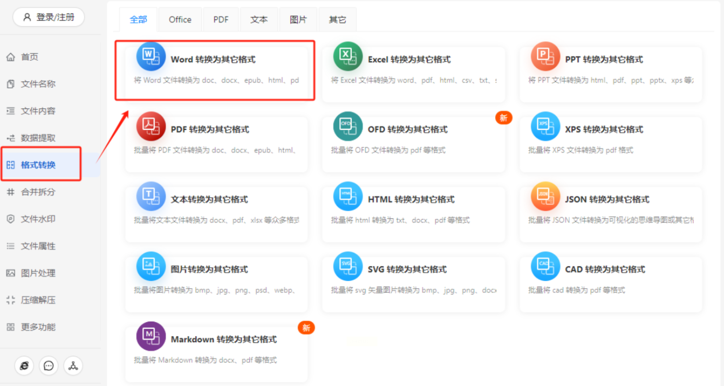 1. 打开功能入口:启动软件后,点击主界面“格式转换”模块,找到“Word转图片”选项。此模块专门针对文档格式转换设计,界面简洁无多余广告。