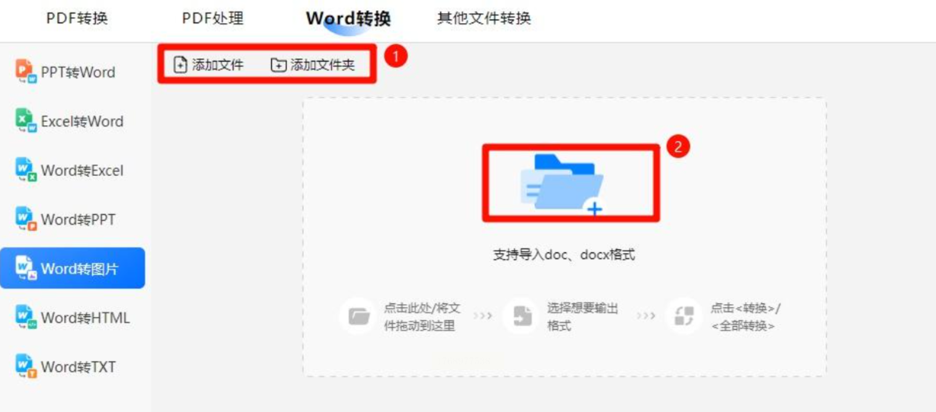 1. 选择转换类型:打开软件后,在左侧菜单找到“Word转图片”功能,支持直接导入word文件。