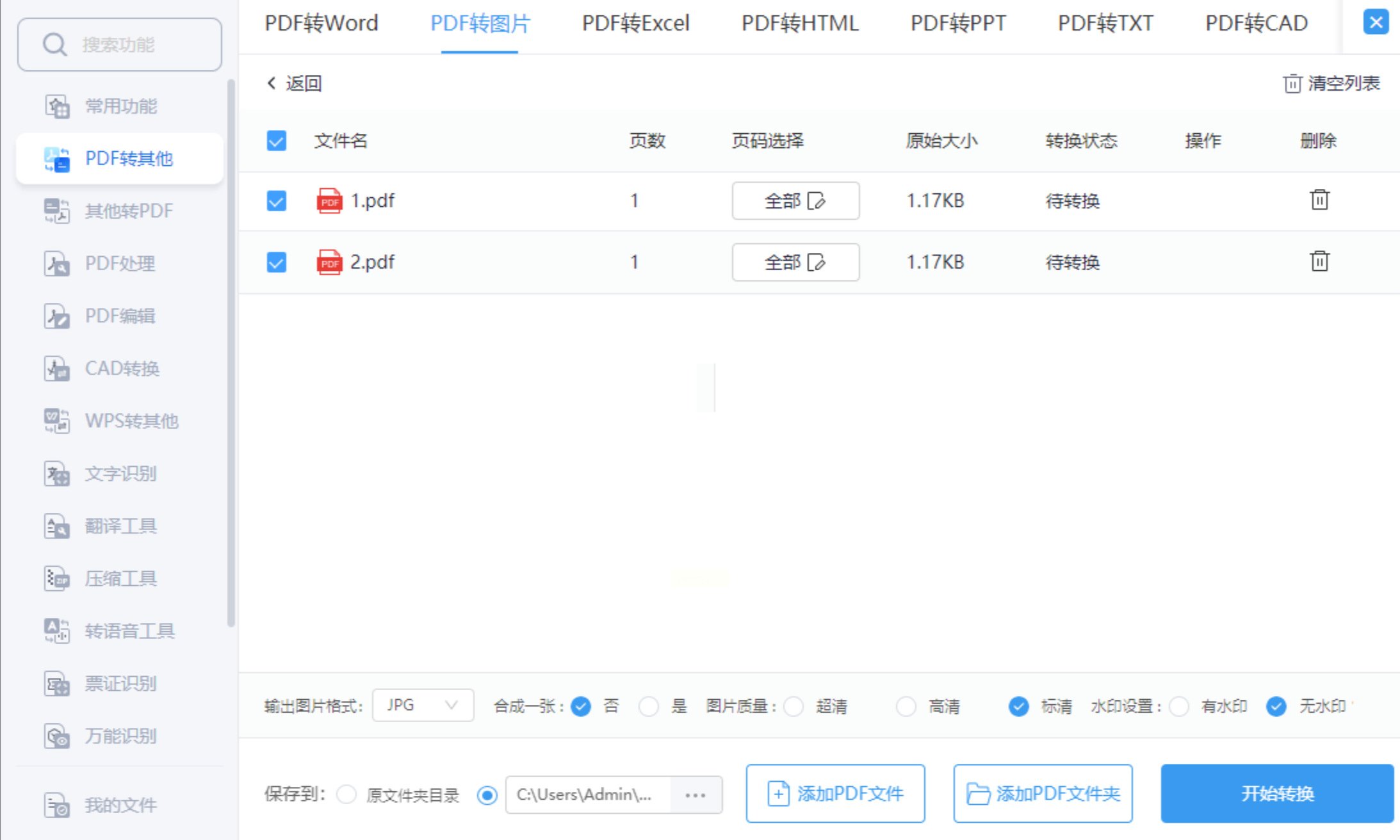 2. PDF转图片:进入“PDF处理”模块,选择“PDF转图片”,导入已转换的PDF文件。