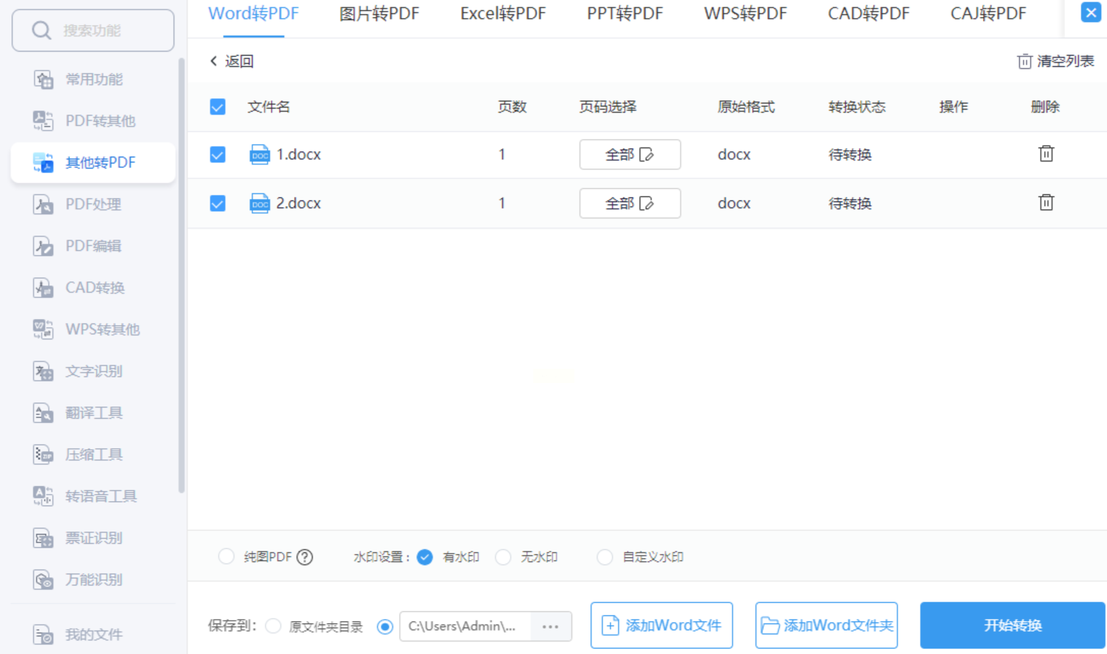 1. Word转PDF:在左侧菜单选择“Word转PDF”,添加文件后设置转换参数(如是否保留格式)。