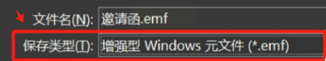 2. 在保存类型里,这次选择一个你可能不太熟悉的格式:“增强型Windows元文件(*.emf)”。保存这个文件。