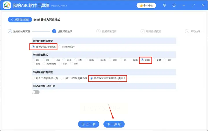 接着,把需要转换的所有Excel表格文件导入到软件列表里。在输出格式设置那里,依次选择[转换为常见的格式]、具体格式选[docx],并在排版选项里,可以考虑勾选类似“[优先保证所有列在同一页面上]”的选项,这能防止表格在Word里被不适当地分页截断。