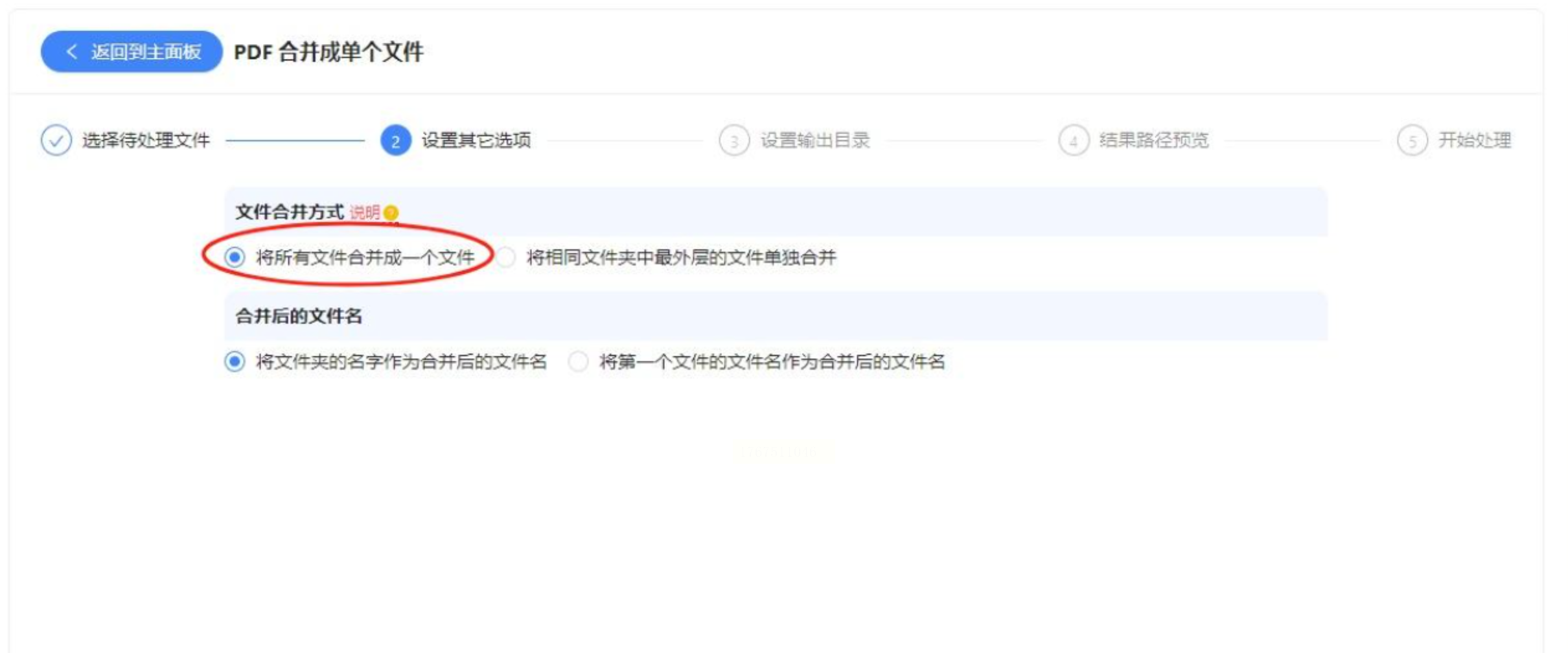 3. 设置合并选项:勾选“按文件夹单独合并”可将不同文件夹内的PDF拆分为独立文件。