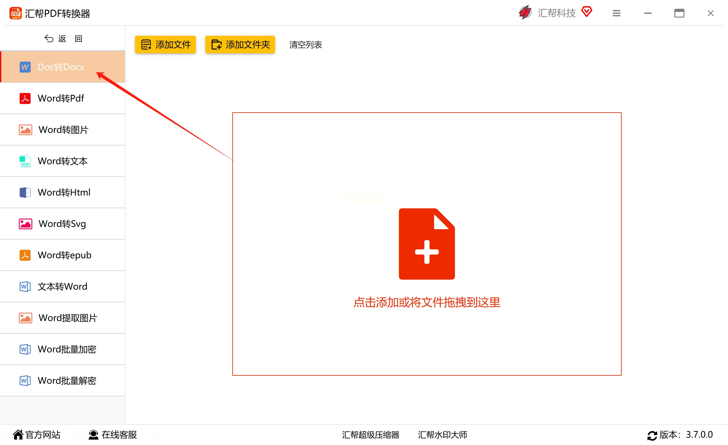 方法一:使用“汇帮PDF转换器”批量把doc转为docx