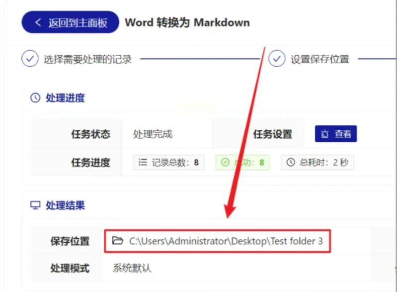 7. 完成查看:转换完成后,软件通常会弹窗提示,并自动打开你刚才设置的那个输出文件夹。进去检查一下,所有新的 `.docx` 文件就都在里面了。