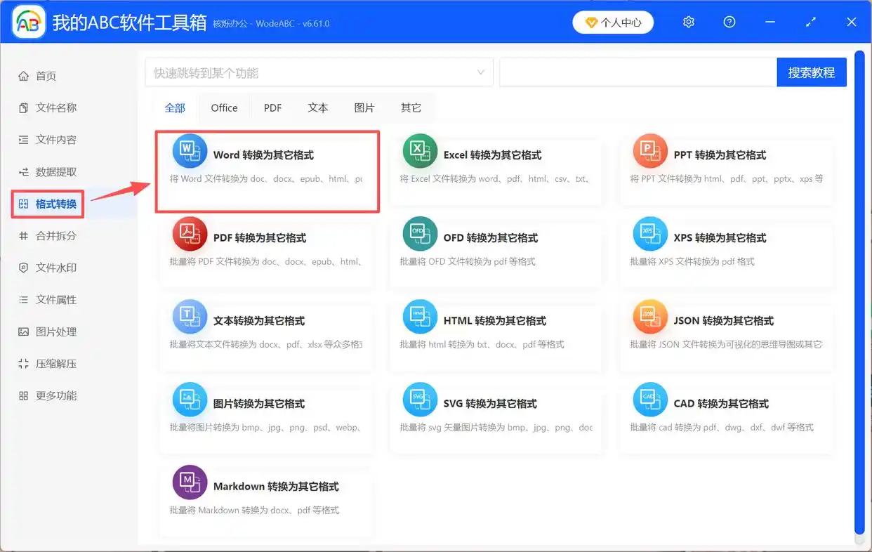 1. 打开工具箱:启动软件后,在功能区找到“格式转换”模块,点击进入。