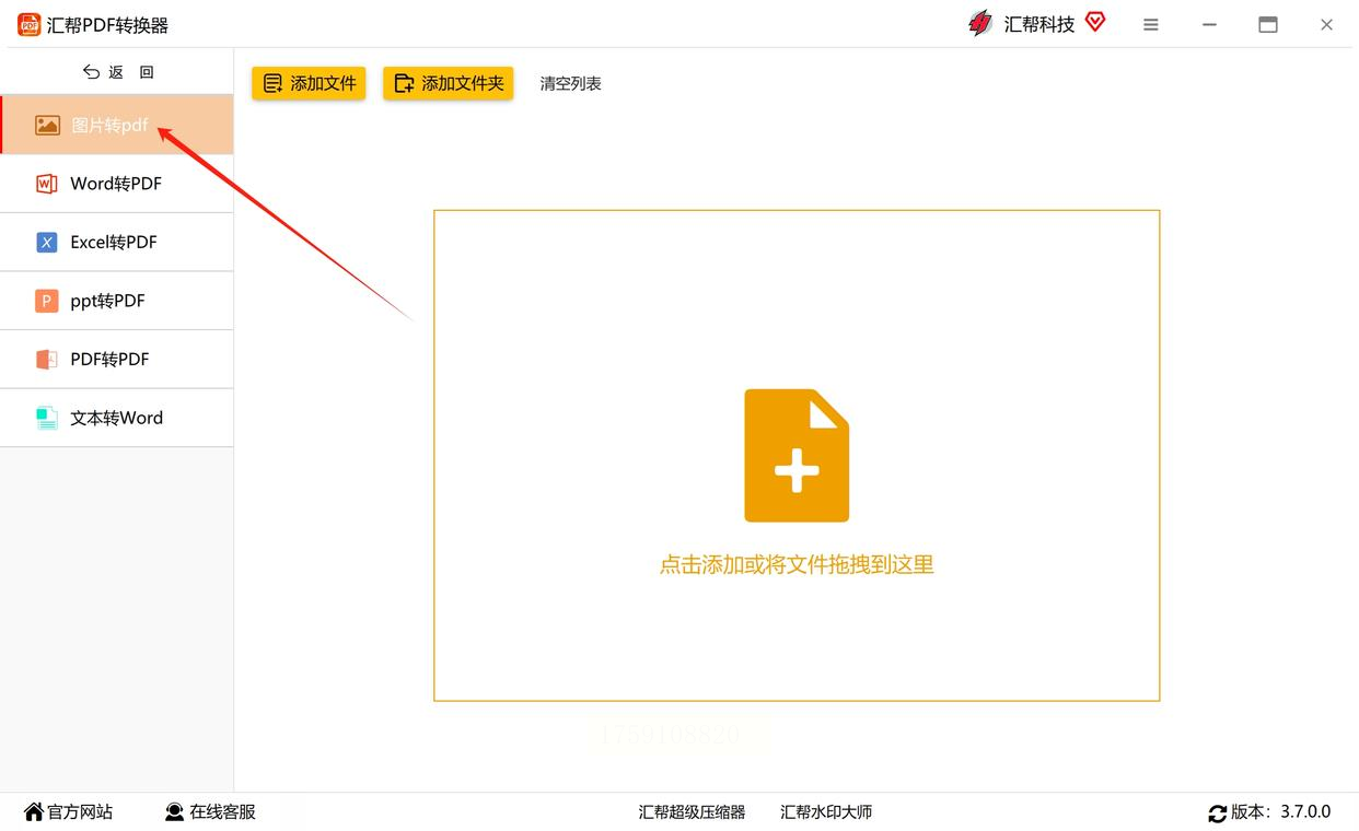 第二步,这时候左边会弹出一排功能,像“图片转PDF”、“Word转PDF”这些,咱们直接选“图片转PDF”。