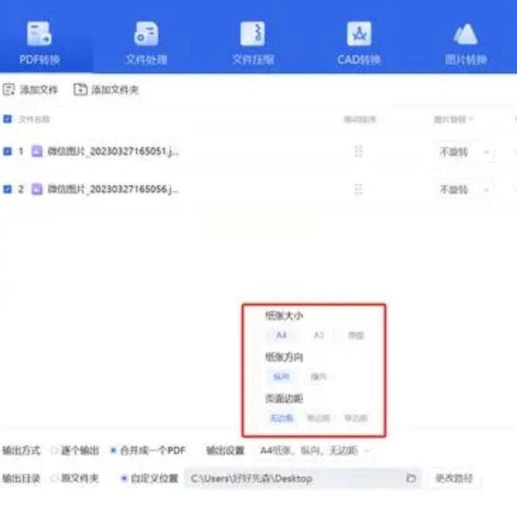 第四步,如果有多张图片,记得勾选“合并成一个PDF文件”,这样就不会输出一堆零散文件了。