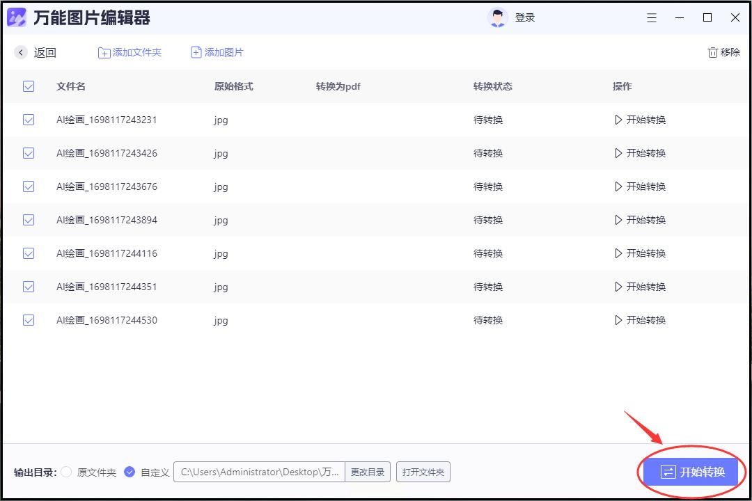 第二步,把要转换的图片全部导入进来,这个功能通常支持批量操作,很贴心。