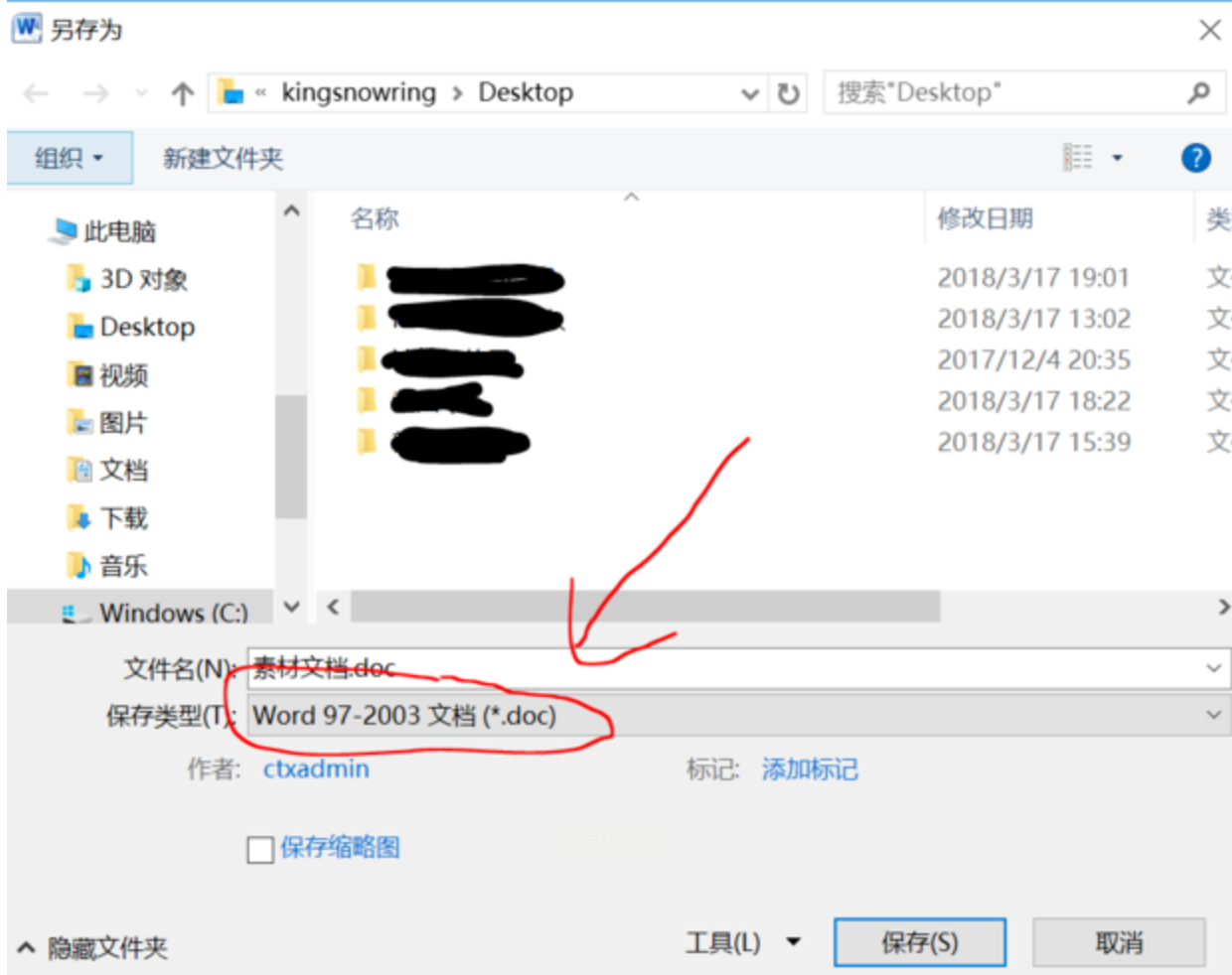 第四步:点了“另存为”之后,会弹出一个保存对话框。这里最关键的一步来了——找到“保存类型”或者“文件格式”那个下拉菜单,点开它,在一堆格式选项里找到“Word 97-2003 文档 (*.doc)”,选中它。