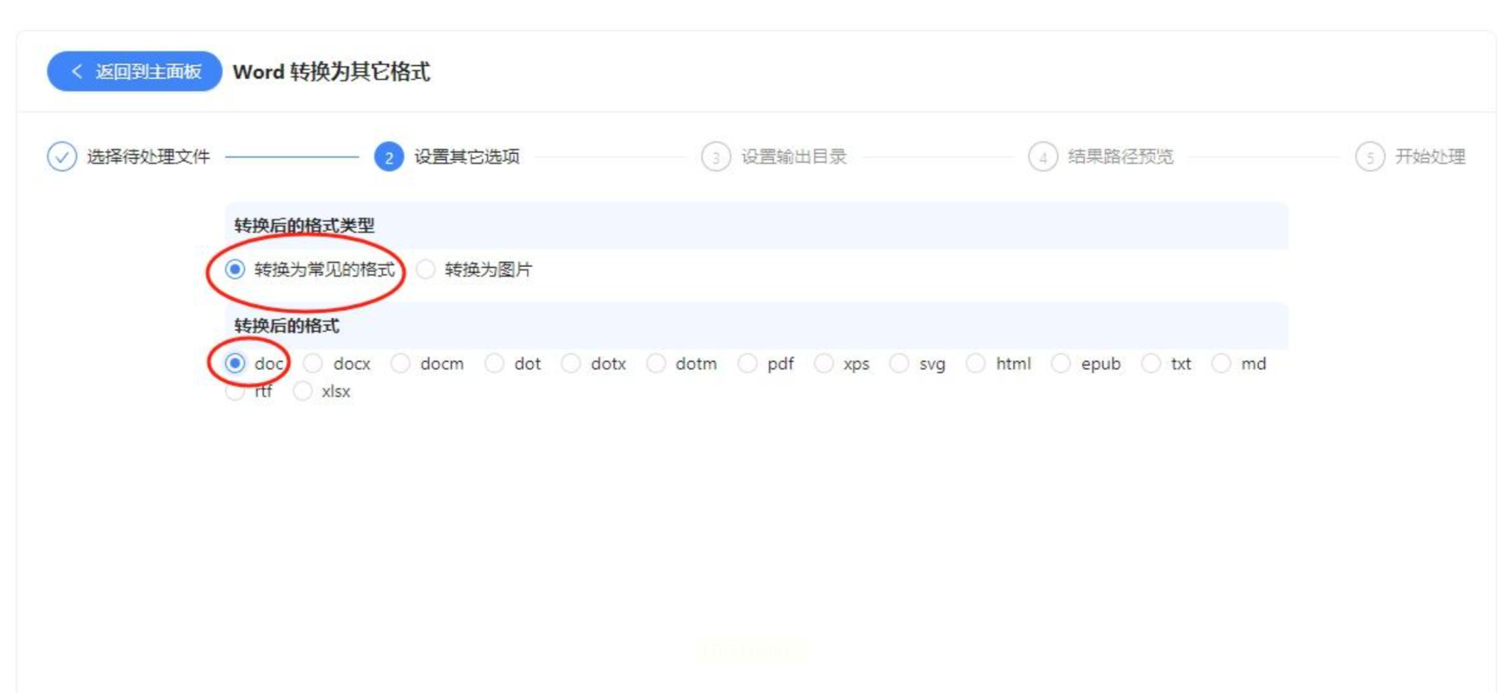 第四步:文件添加好后,看页面下方有个“输出格式”的设置选项。点开下拉菜单,选择“DOC”格式。这里一定要检查清楚,别选错了。