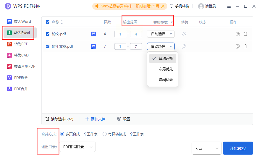 3. 选择转换模式(「基础转换」或「精确格式保留」),点击「转换」。