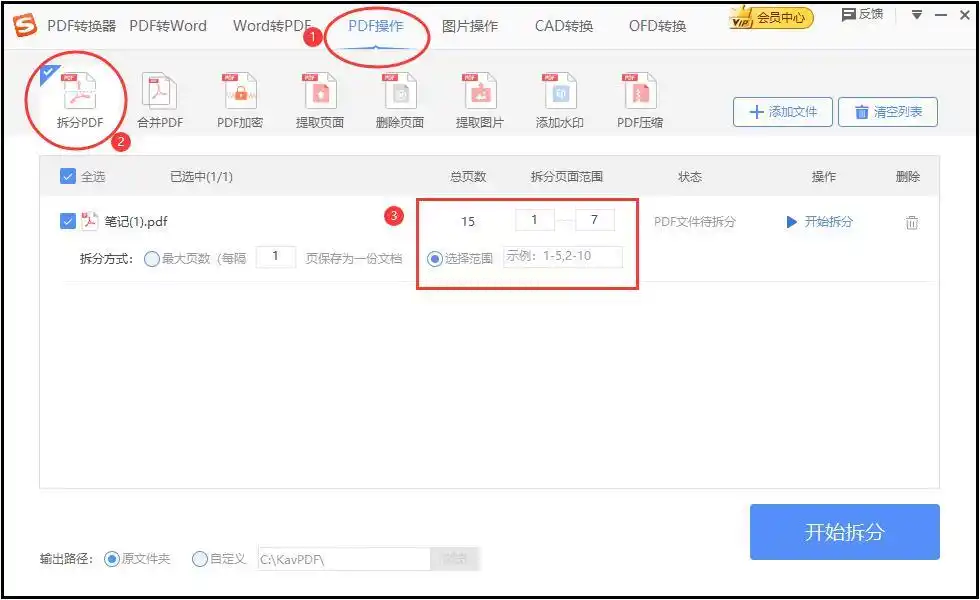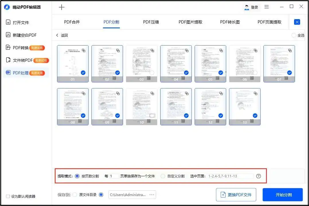 导入文件后,在下方设置保存路径,选择按页码或范围分割。支持自定义页码区间,也可选择按书签、章节等方式拆分。