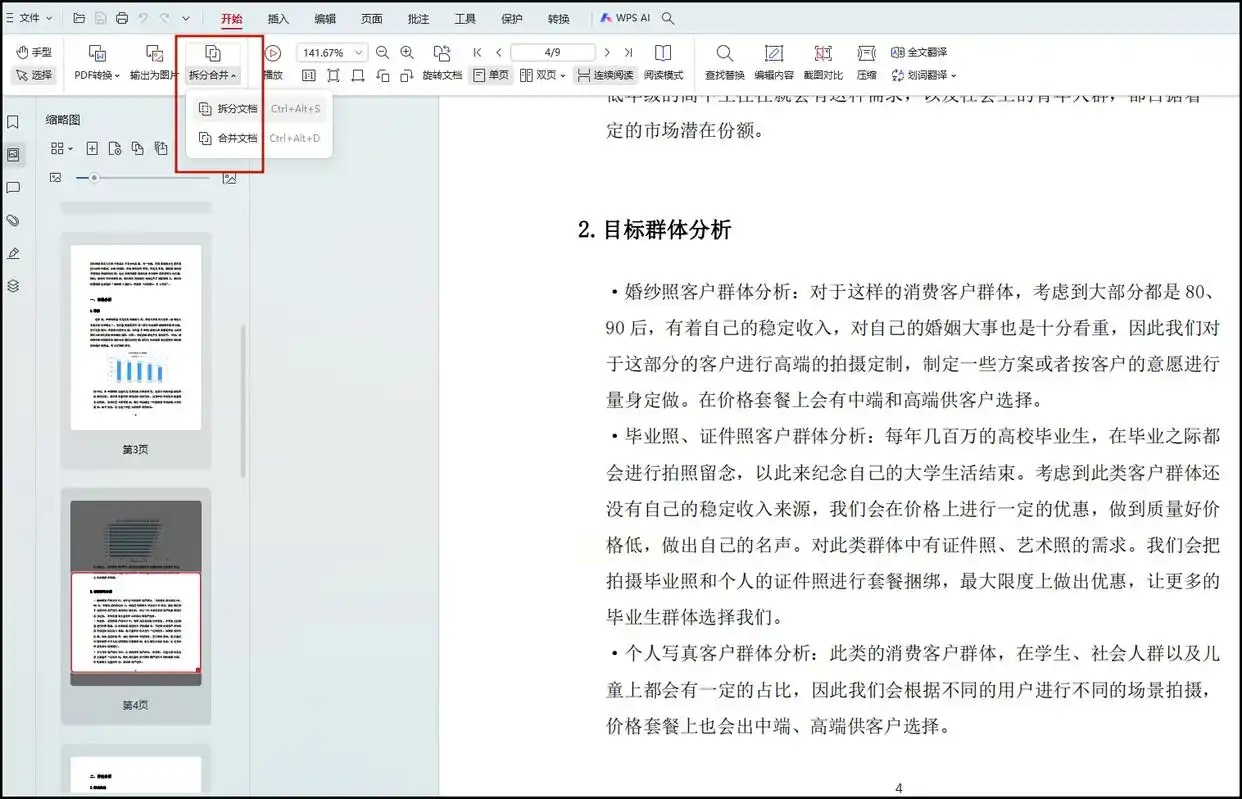 在WPS中打开需要分割的PDF文档。