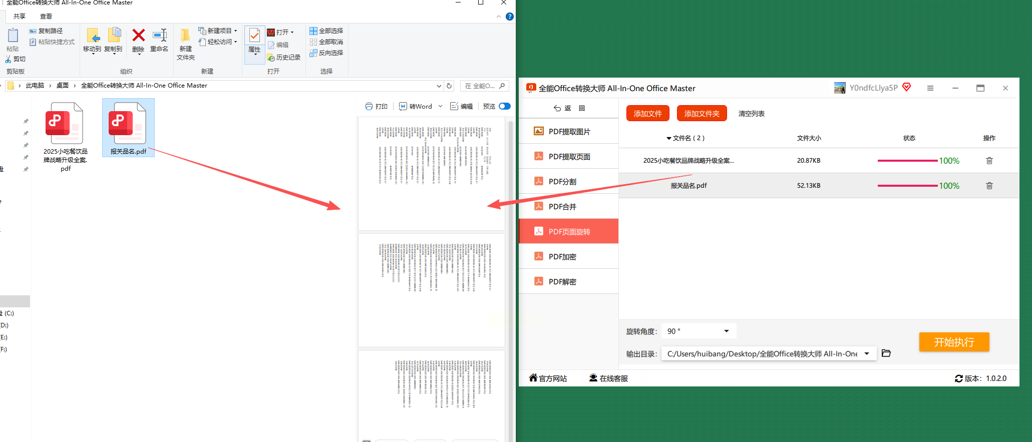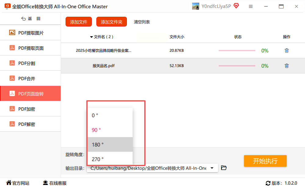 步骤五:最后,点击那个醒目的“开始执行”按钮。软件会快速处理,完成后会自动打开输出文件夹。你会看到一个新的、方向正确的PDF文件,而原来的那个旧文件会被软件自动备份保留,完全不用担心操作失误覆盖掉原文件。