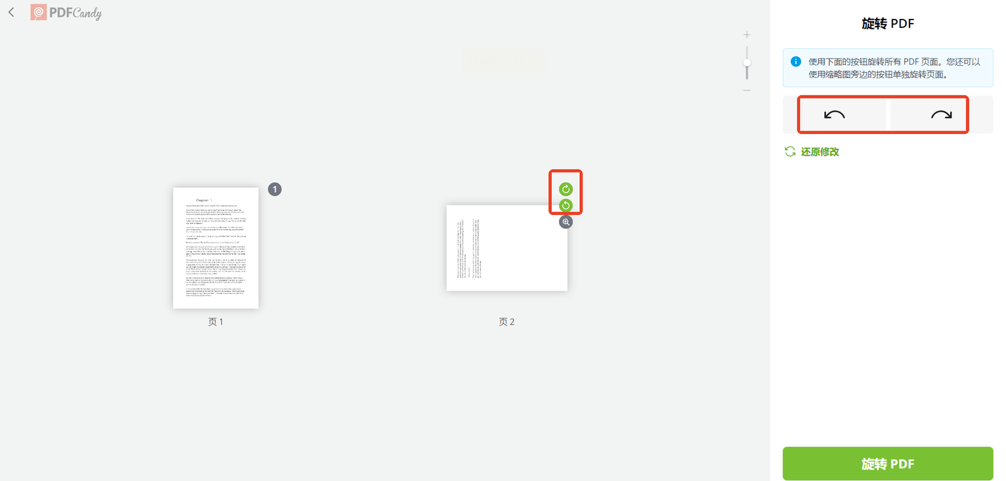 步骤三:你可以点击右侧的旋转按钮,对所有页面进行统一角度的旋转。如果只想调整其中某一页,直接点击对应缩略图旁边的小图标就行。