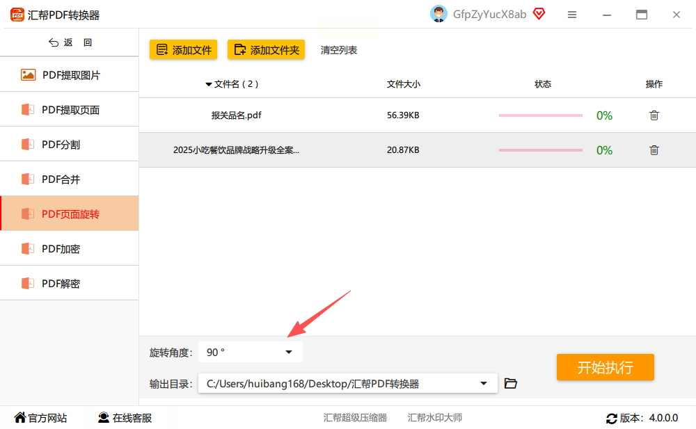 步骤二:在左侧栏选择“PDF页面旋转”功能,在右侧上传需要处理的PDF文件,同样支持批量操作。