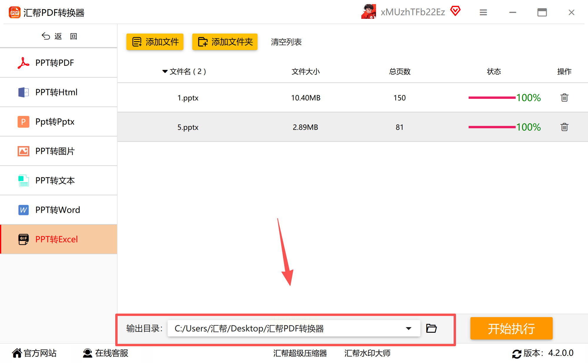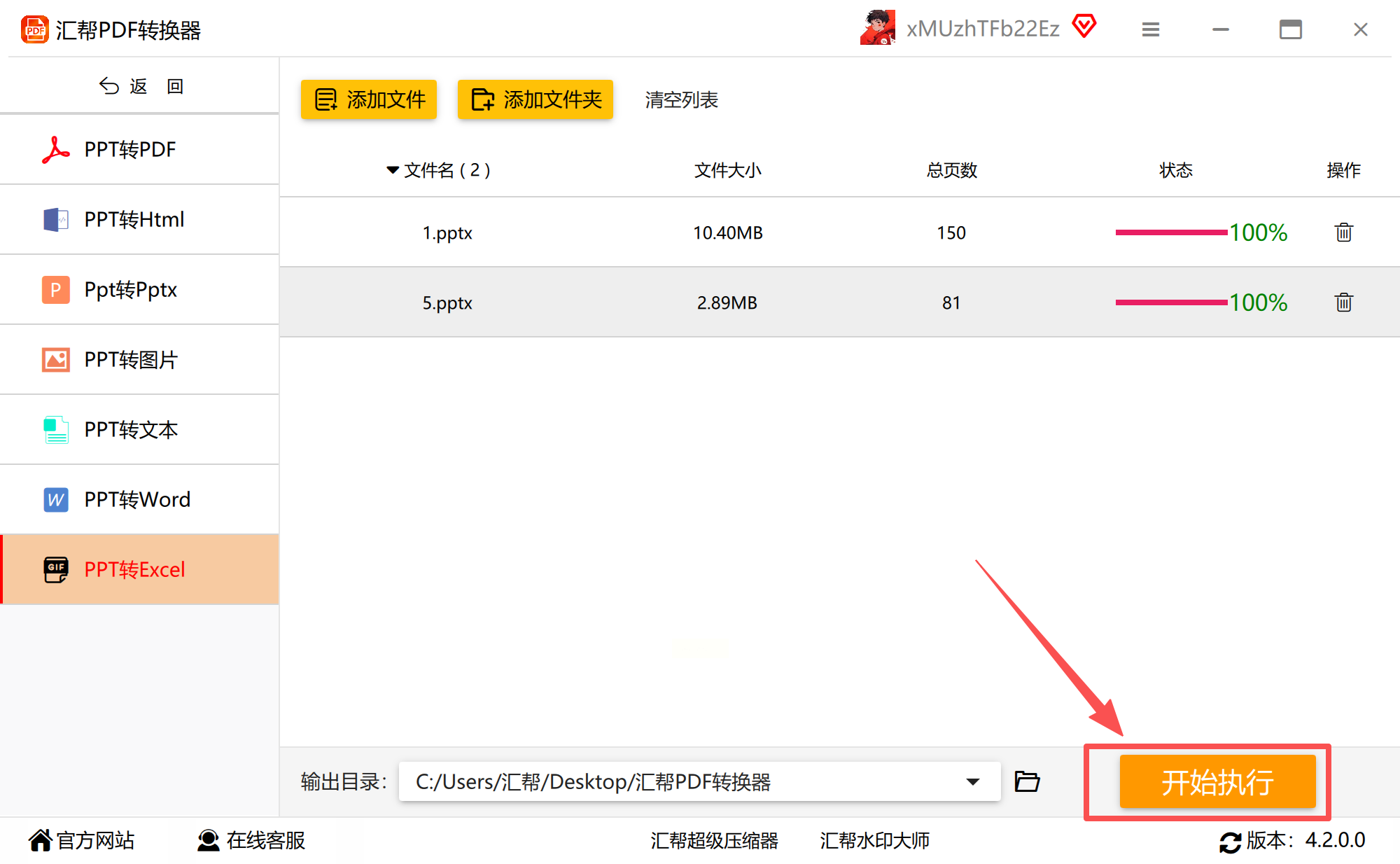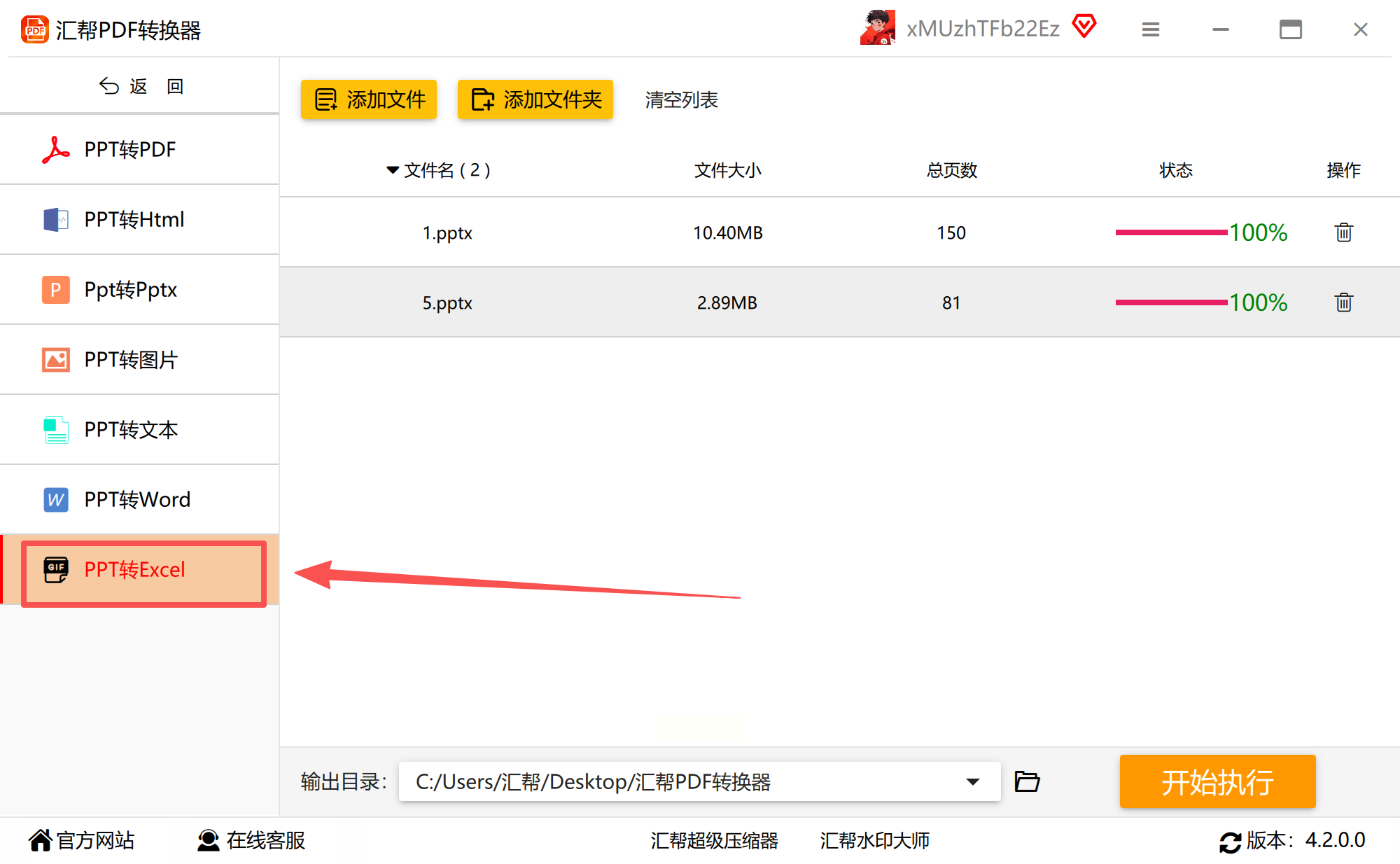 步骤二:从转换类型中明确选择“PPT转Excel”功能,进入任务设置界面。