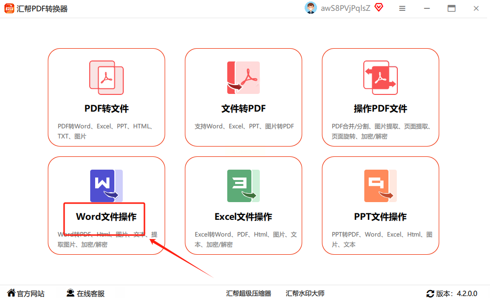 2. 进入Word转换功能:软件打开后,你会看到主界面有很多功能选项。这时候你要找到【Word文件操作】这个菜单,点进去就能看到各种Word相关的功能了。