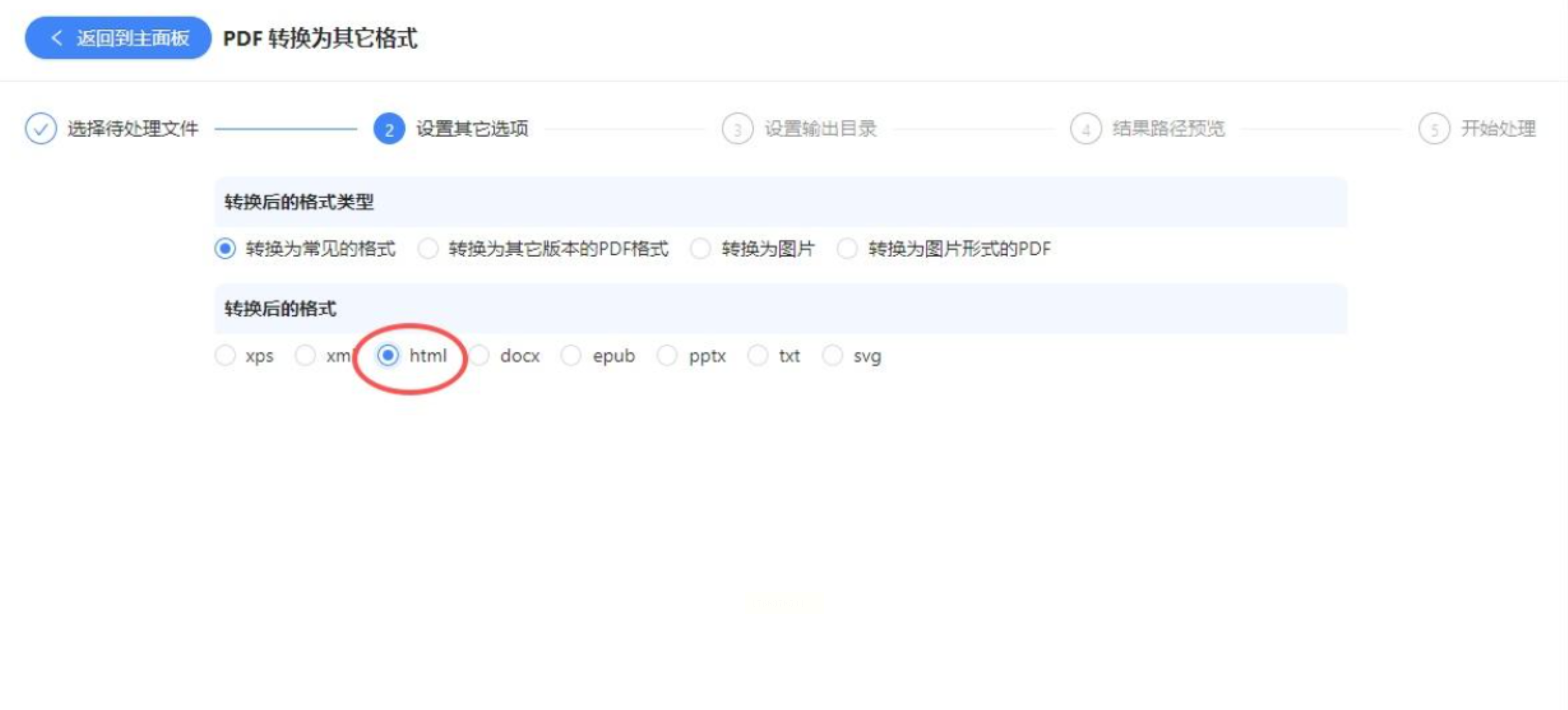 打开风云PDF转换器,点击“PDF转文件”后,在格式列表中确认“PDF转HTML”选项。