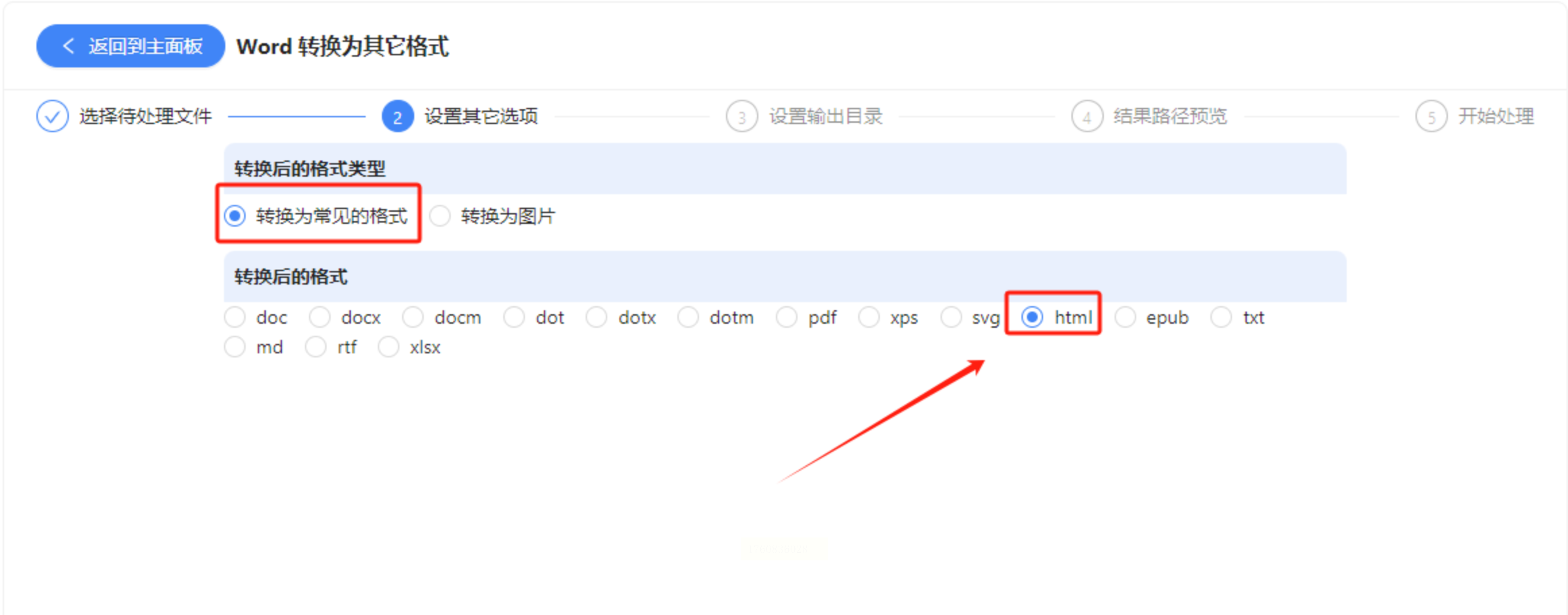3. 格式设置:在转换选项中选择"转换为常见的格式",然后在下拉菜单中指定"html格式",可根据需求勾选"保留图片完整性"、"生成目录导航"等附加选项。