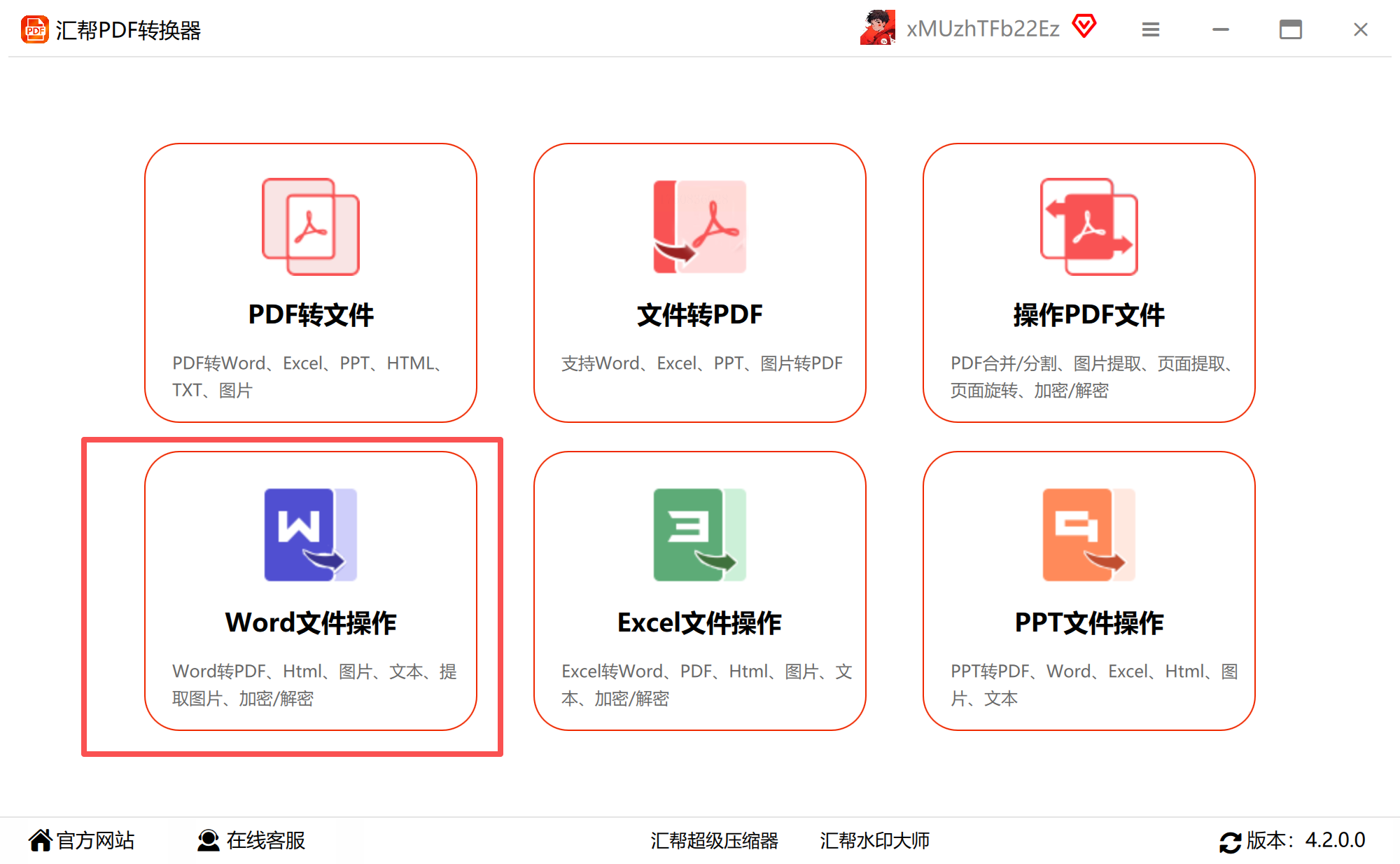 1. 功能入口:打开软件后,在主界面点击"Word处理"模块