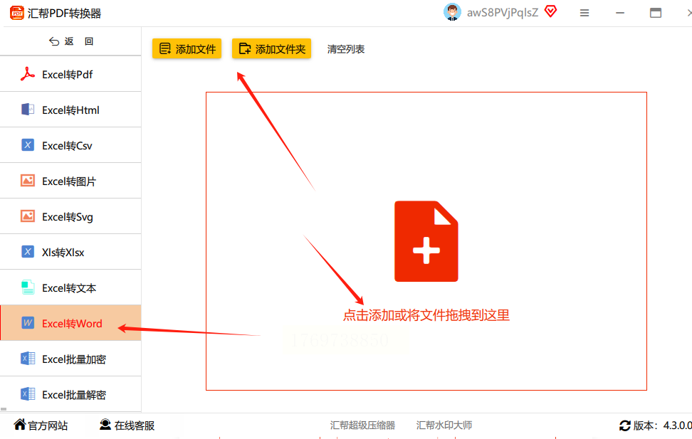 进入主界面后,先看左侧菜单栏,找到“Excel文件操作”分类(不同版本可能叫“表格转换”或“格式转换”,但核心功能一致)。点击后,右侧会弹出“Excel转Word”的操作面板,这时候界面上会有个超大的“添加文件”按钮,或者直接是“+”号,点它就能导入Excel文件了。