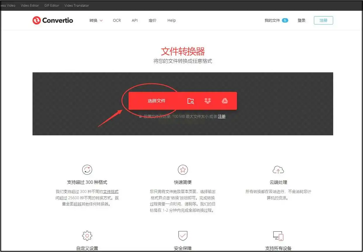 同样,先浏览器访问Convertio官网。在页面明显位置,点击“选择文件”按钮,上传你的PPT。