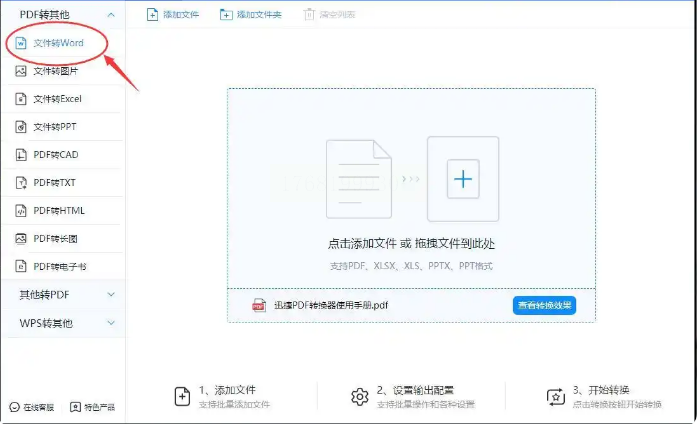 在电脑上打开jackPDF转换器,在首页或功能列表中,找到并点击“文件转Word”或类似选项。