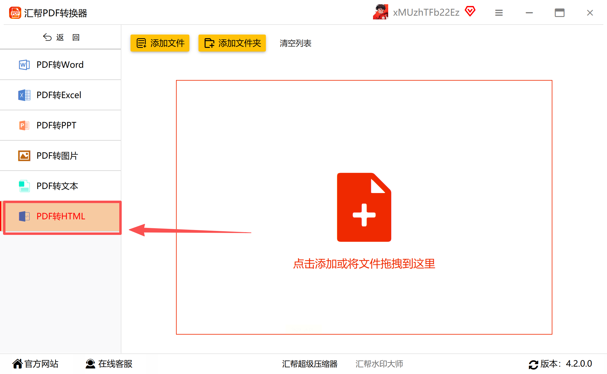 步骤一、在您的计算机上安装并启动该转换器。在主界面中,通常可以清晰地找到“PDF转换”或“文件转换”功能模块,在其中选择“PDF转HTML”选项。