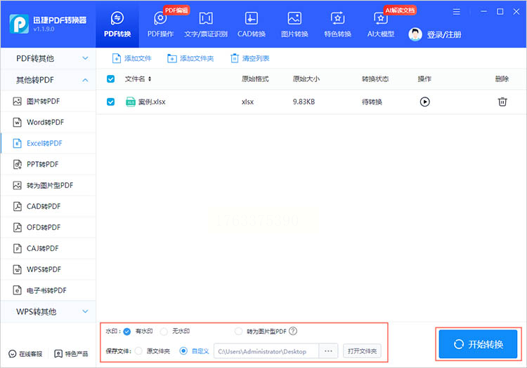 第四步:确认所有设置无误后,点击界面下方的"开始执行"按钮。此时软件会自动在保留原始Excel文件的基础上,生成同名的PDF文件,转换完成后会有提示音或弹窗通知。