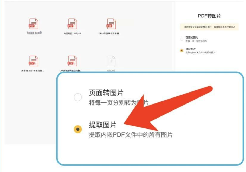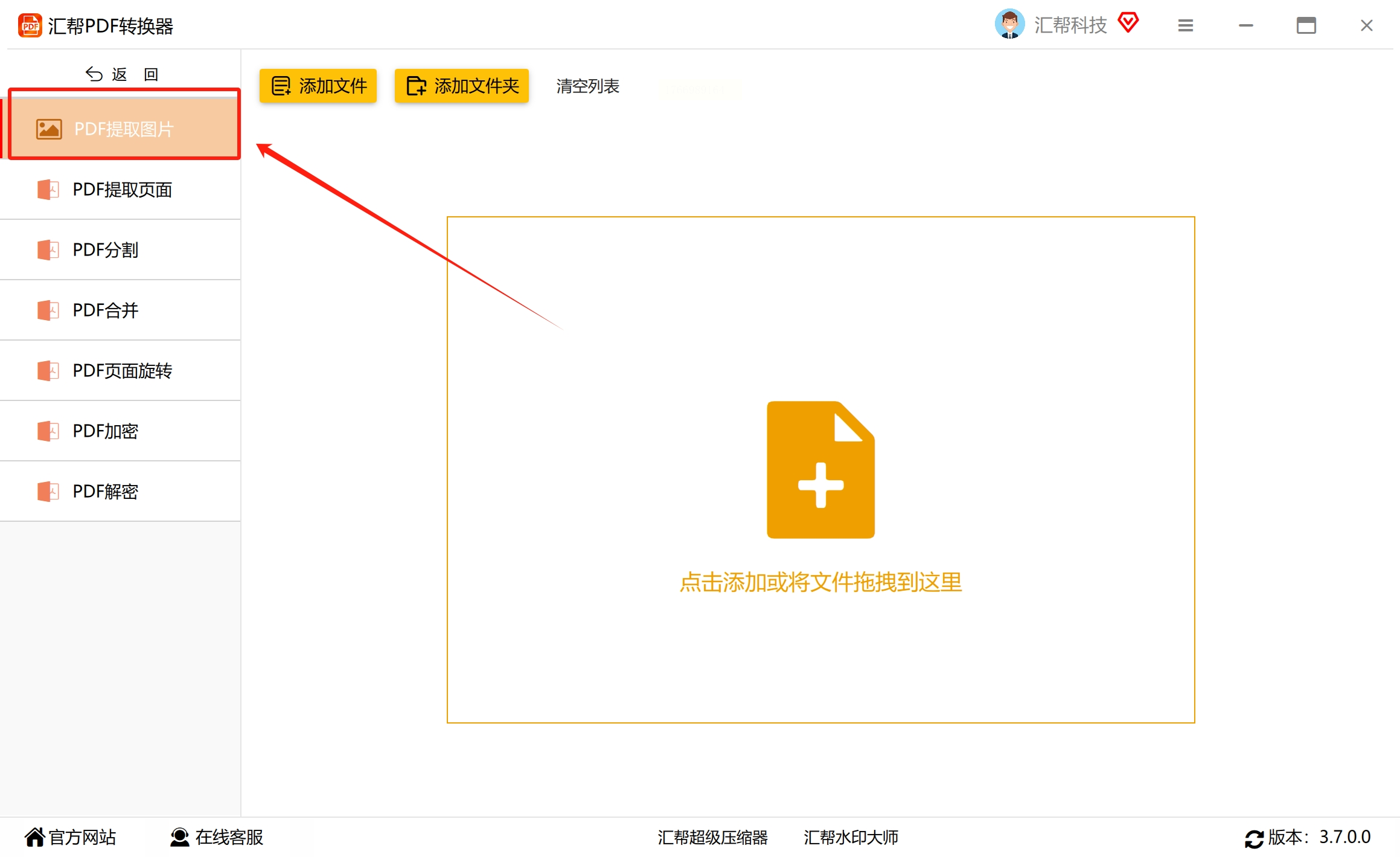 2. 找到"PDF提取图片"功能,上传你的PDF文件
