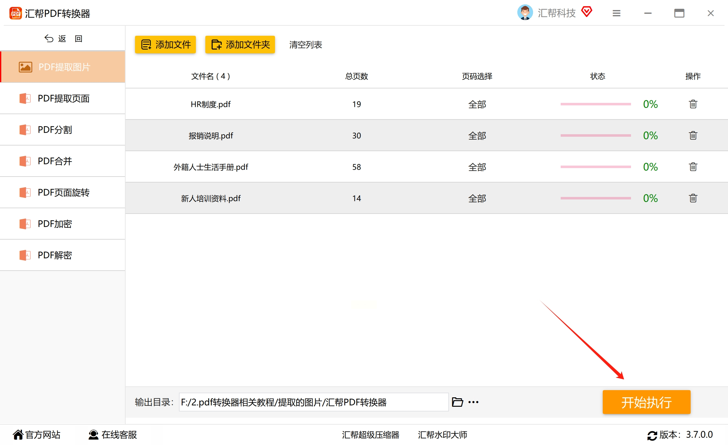 一、汇帮PDF转换器:可以批量重PDF文件中提取图片,界面话的操作很简单,如果文件的隐私等级比较高的话还可以离线操作
